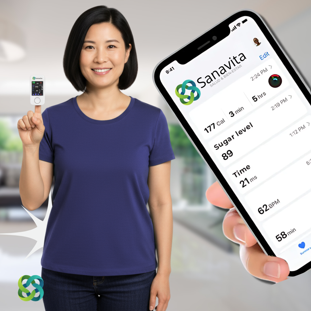 Sanavita™ emplea tecnología de sensores de última generación para monitorear tu salud con precisión y sin dolor. Obtén mediciones rápidas, seguras y confiables, sin necesidad de recurrir a métodos invasivos ni molestos pinchazos.